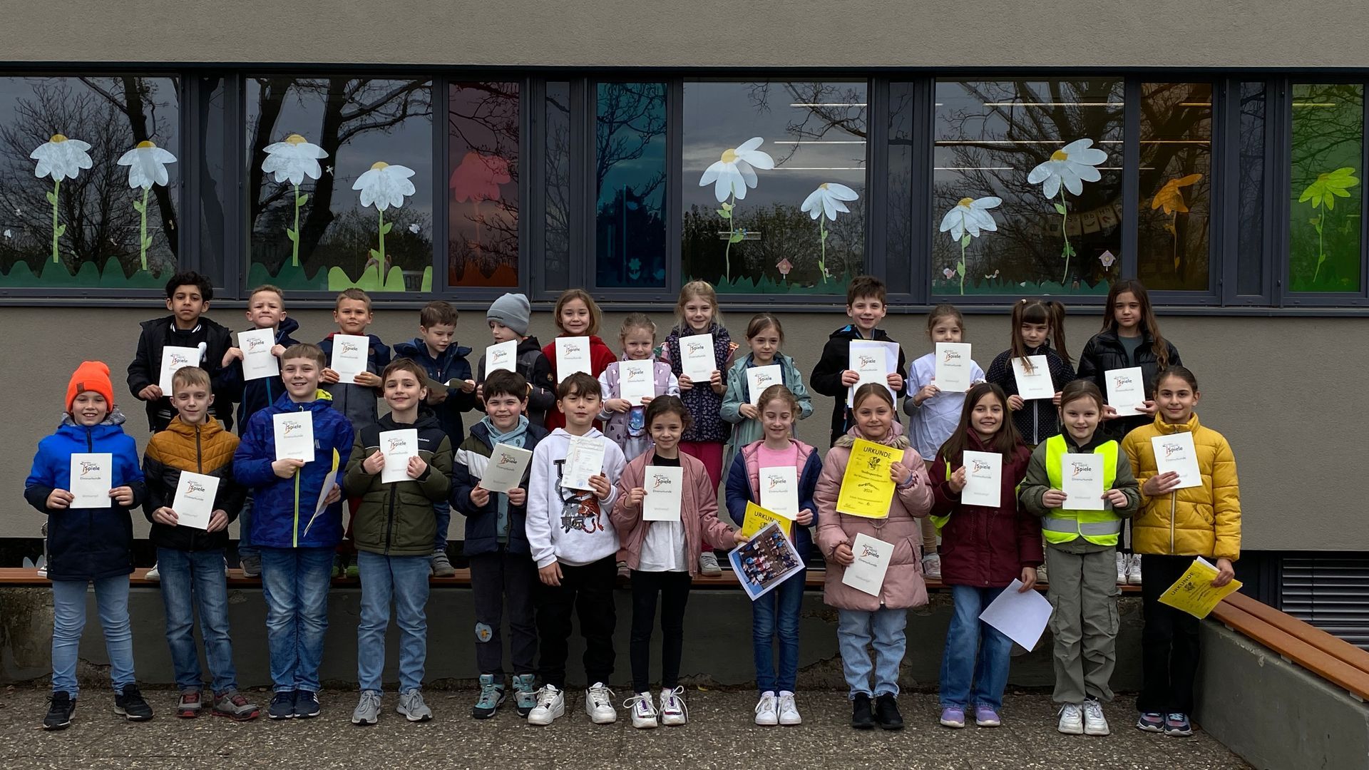 Unsere Kinder haben auch in diesem Schuljahr sehr erfolgreich an vielen Wettbewerben teilgenommen. Wir freuen uns sehr, dass wir euch heute dafür ehren konnten.