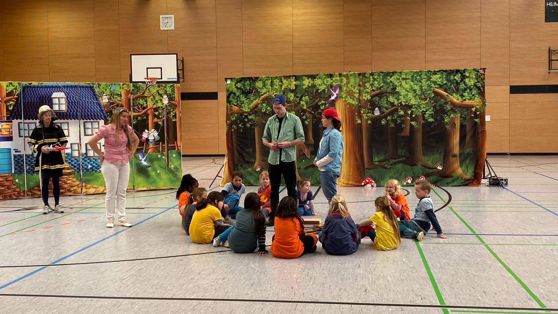Unsere Schülerinnen und Schüler fieberten mit, als die böse Fee auftauchte und ihren Fluch aussprach, dass sich Dornröschen an einer Spindel stechen und - ebenso wie alle Schlossbewohner - tot umfallen wird. Die gute Fee wandelte den Fluch allerdings in einen 100-jährigen Schlaf um. Am Ende der Veranstaltung zeigten sich alle Kinder begeistert.